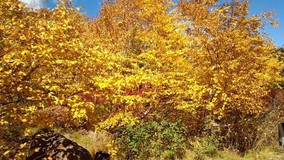 昨年はダケカンバの黄色とナナカマドの赤が同時だったのですが、今年はナナカマドの赤が今ようやく色付いています。