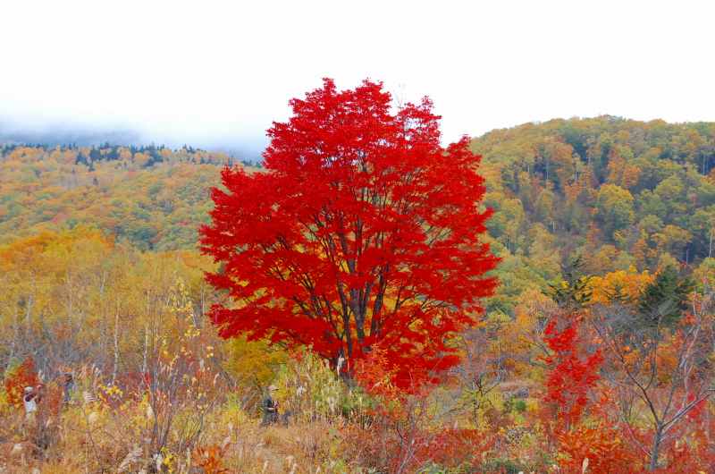 10月26日 ハナノキの下で。赤や黄色、葉の裏の白。
