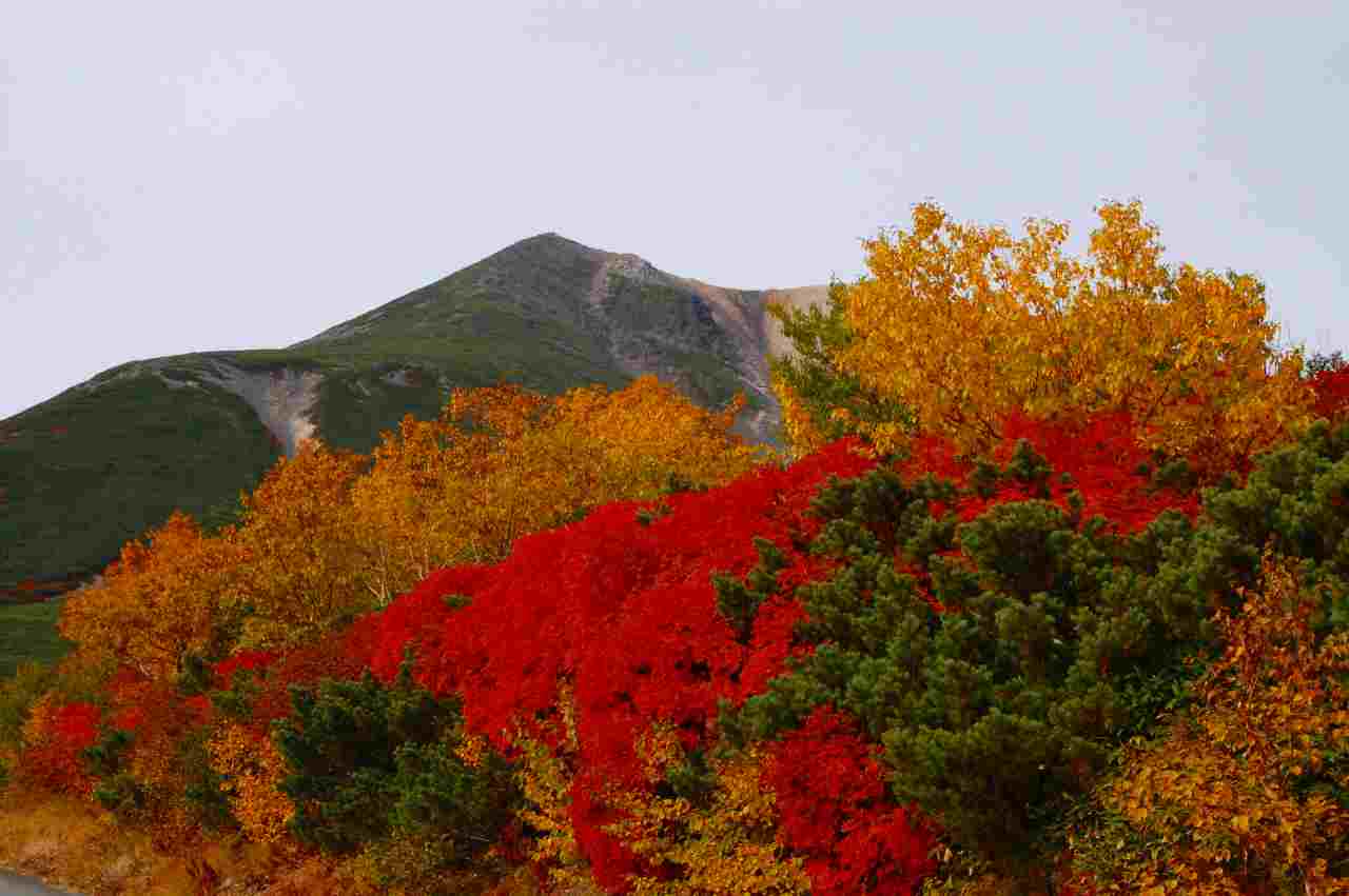 ハイマツの緑の上に鮮やかな紅や朱色、黄色が散りばめられたパレットのようです。