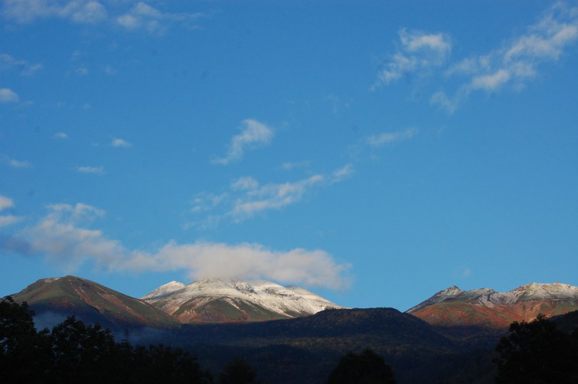 昨年の10月7日。カーテンを開けると粉砂糖をかけたような乗鞍岳の姿が!