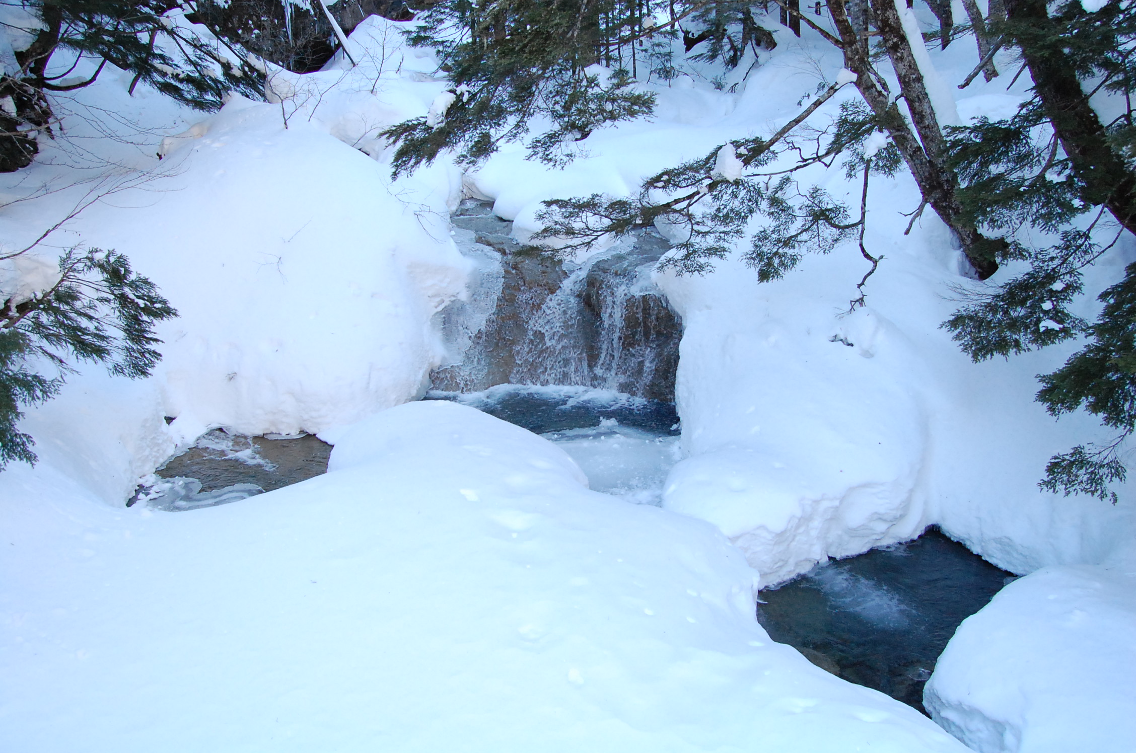 真っ白な雪の世界のなかに静かにたたずむ無名沢。