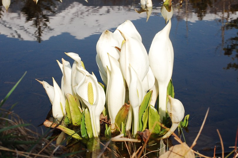 久しぶりのアルムたよりです。4月も後半に入り、ゴールデンウィークが近づいてきましたね。乗鞍高原の標高1200m地点、宮の原水芭蕉群生地ではもう白いお花たちが目を覚まし始めているようです。写真は2010年5月5日、一ノ瀬園地ドジョウ池にて。