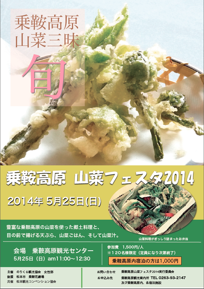 5月25日は採れたて山菜の天ぷらを味わうことができる山菜フェスタがありますよ~♪
