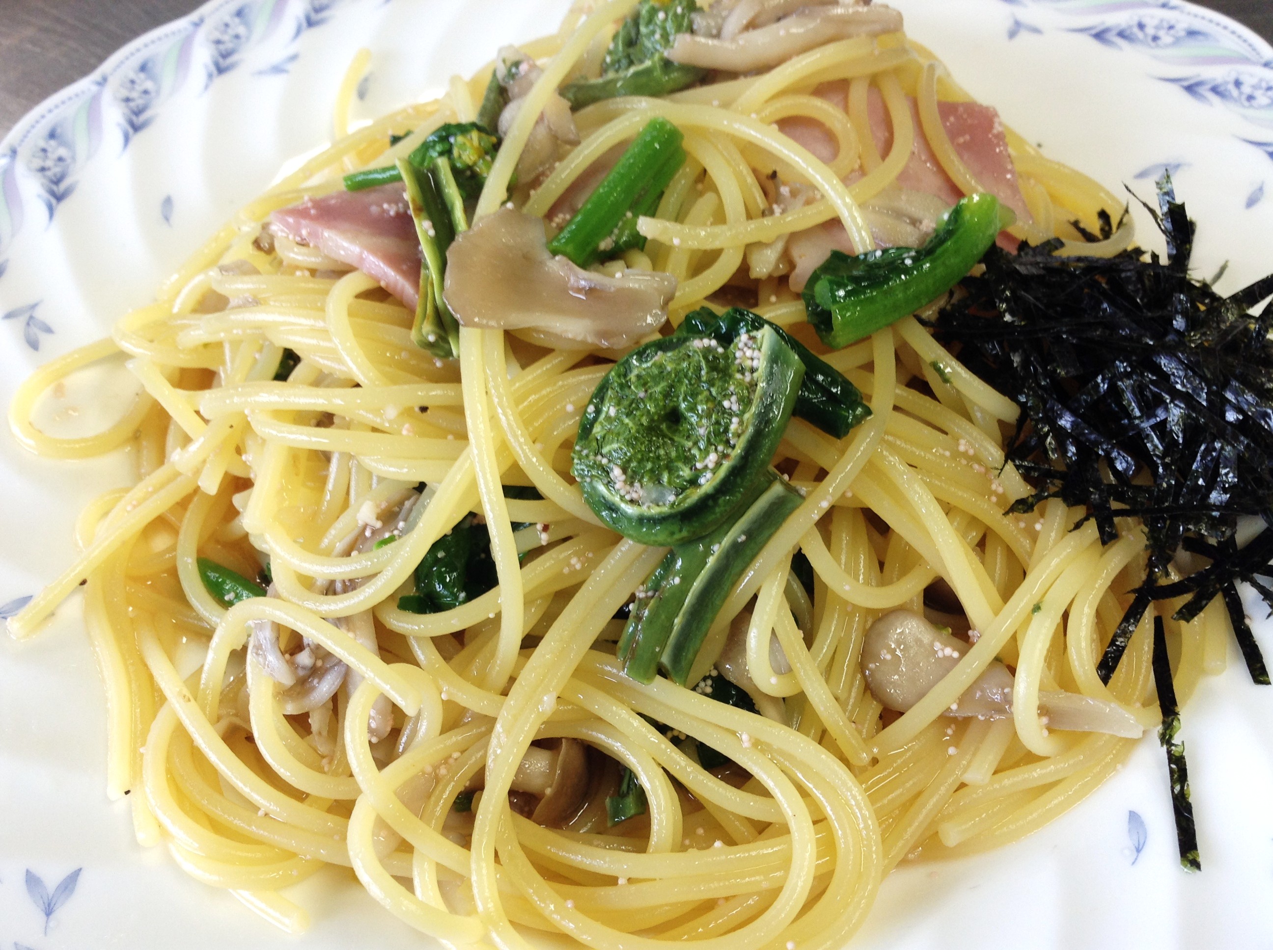 アルム風スパゲティにもウドなどその日採れた山菜が入ります。