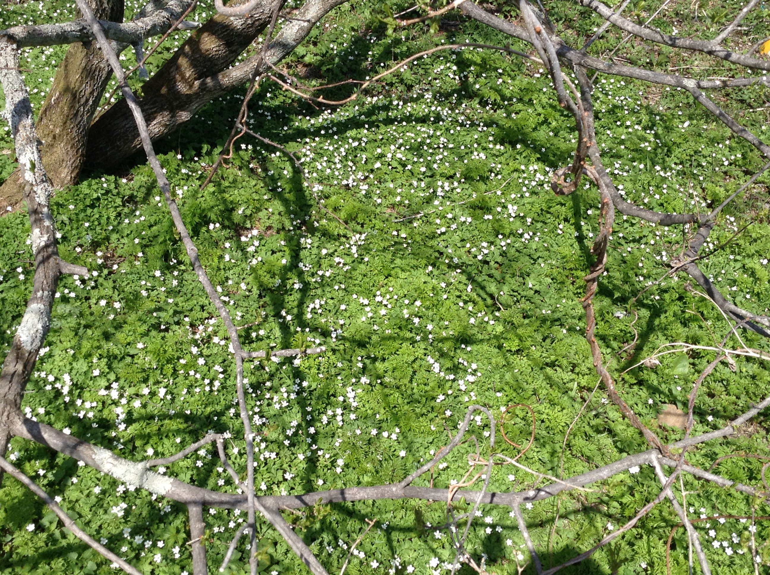 今日のおさんぽではすぐ近くでニリンソウがたくさん咲いているのを見つけました。