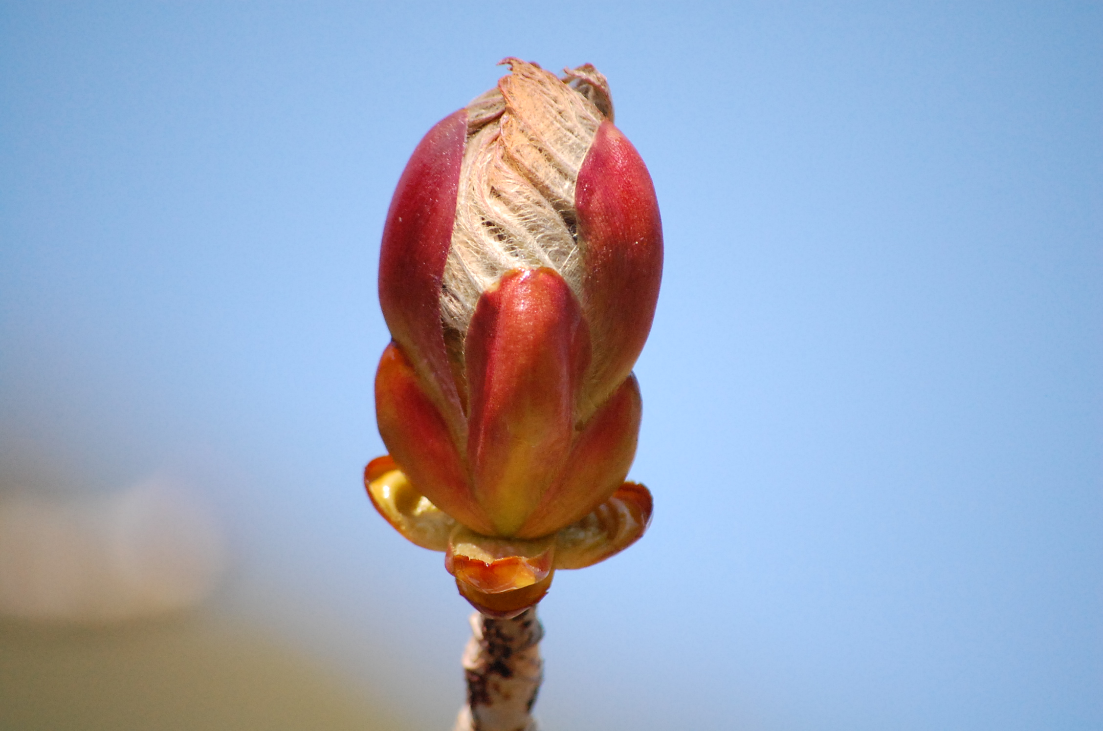 ねばねばする冬芽をグイッと破ってトチの木の新芽が顔を出しています!パワフル。