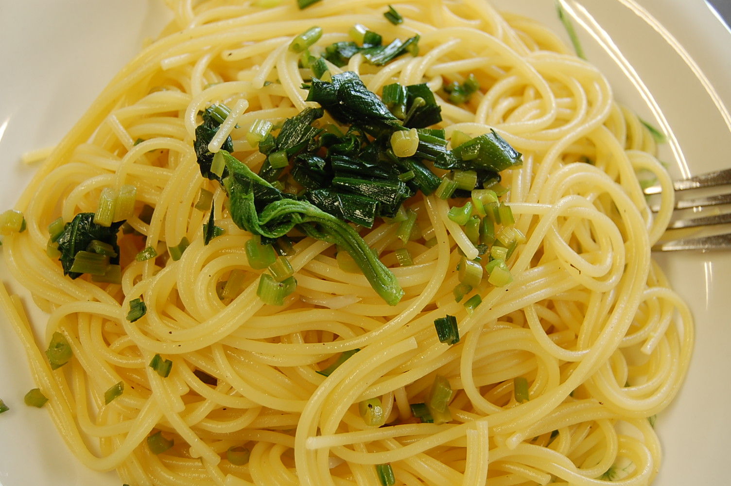 ランチタイムのもうひとつの期間限定メニュー、行者ニンニクぺペロンチーノはもうしばらくお出しできそうです。