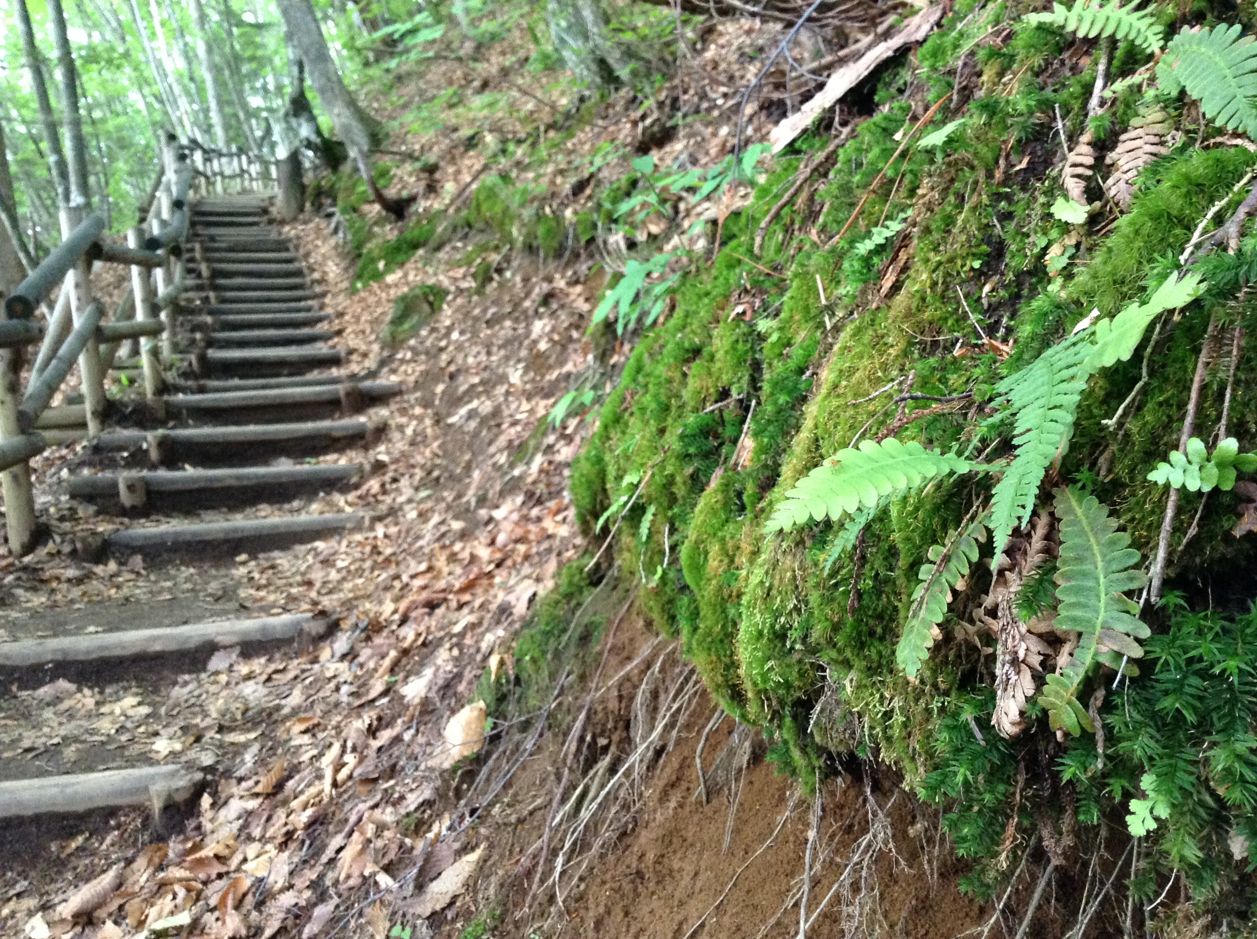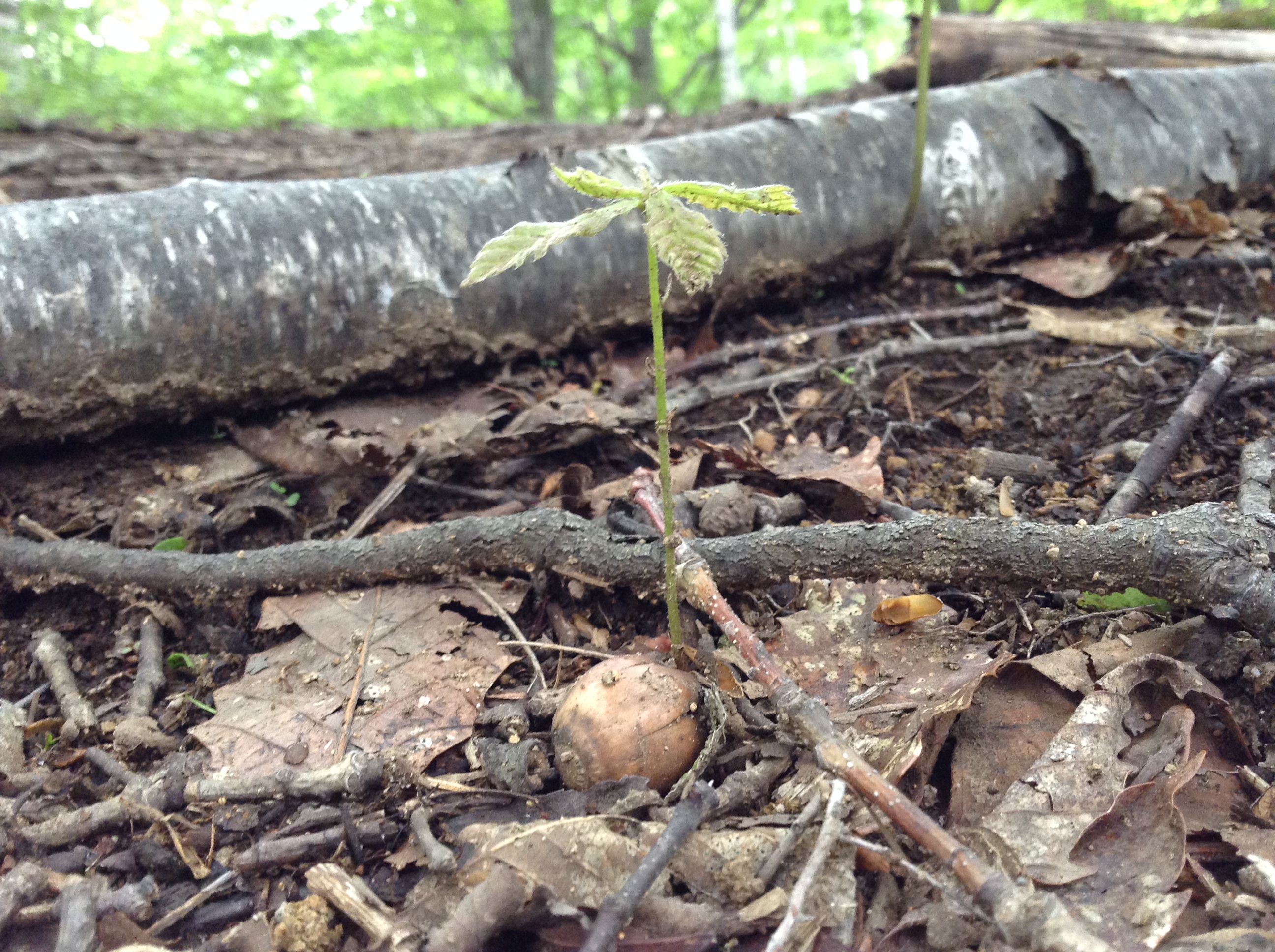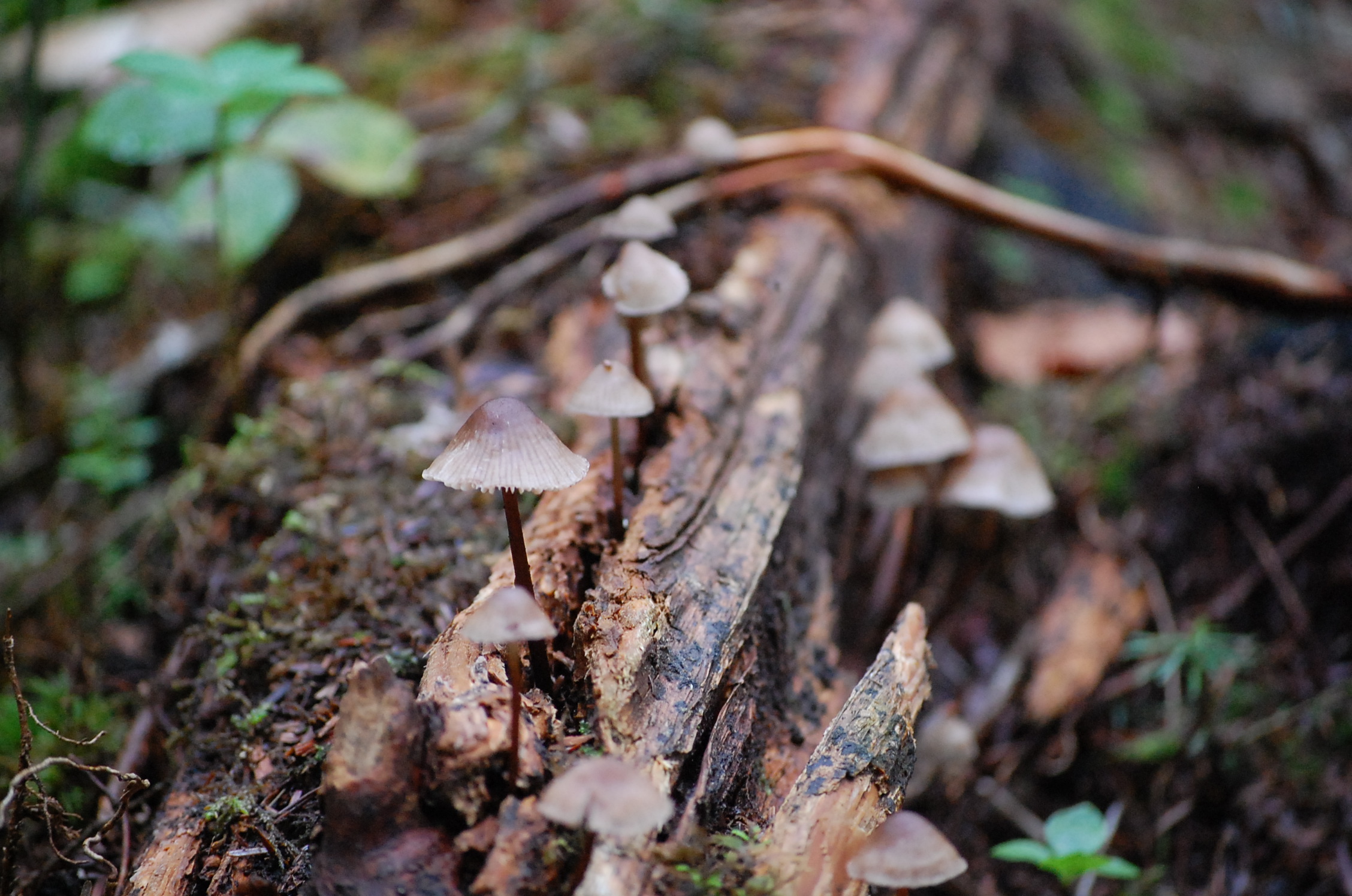 モコモコのコケが朽ちた木を覆い、そこにまた新たな木の赤ちゃんが育っているのです。
