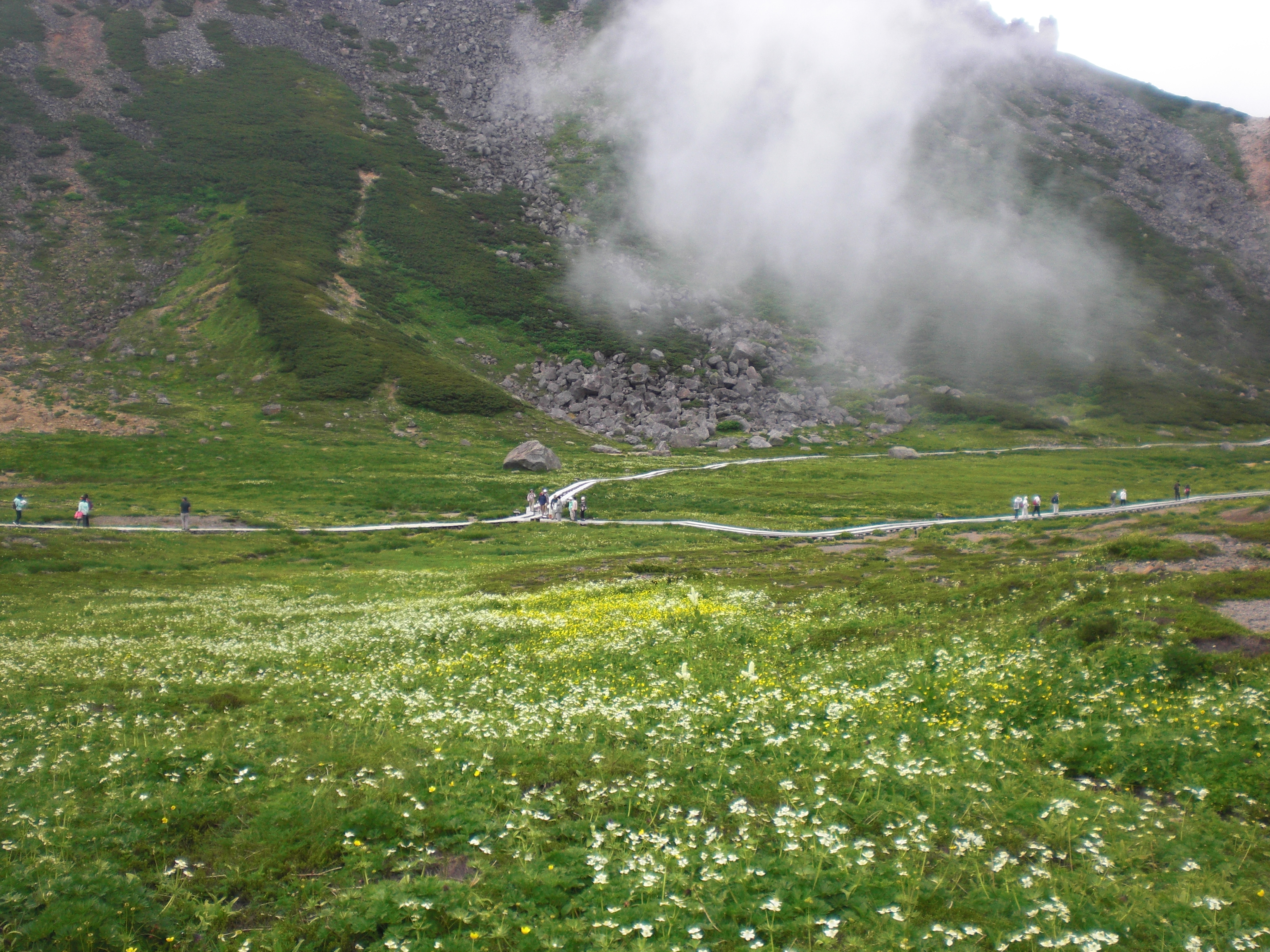 こちらは同じく畳平お花畑。2011年7月25日の様子です。ハクサンイチゲ、ミヤマキンポウゲが咲き乱れていますね。