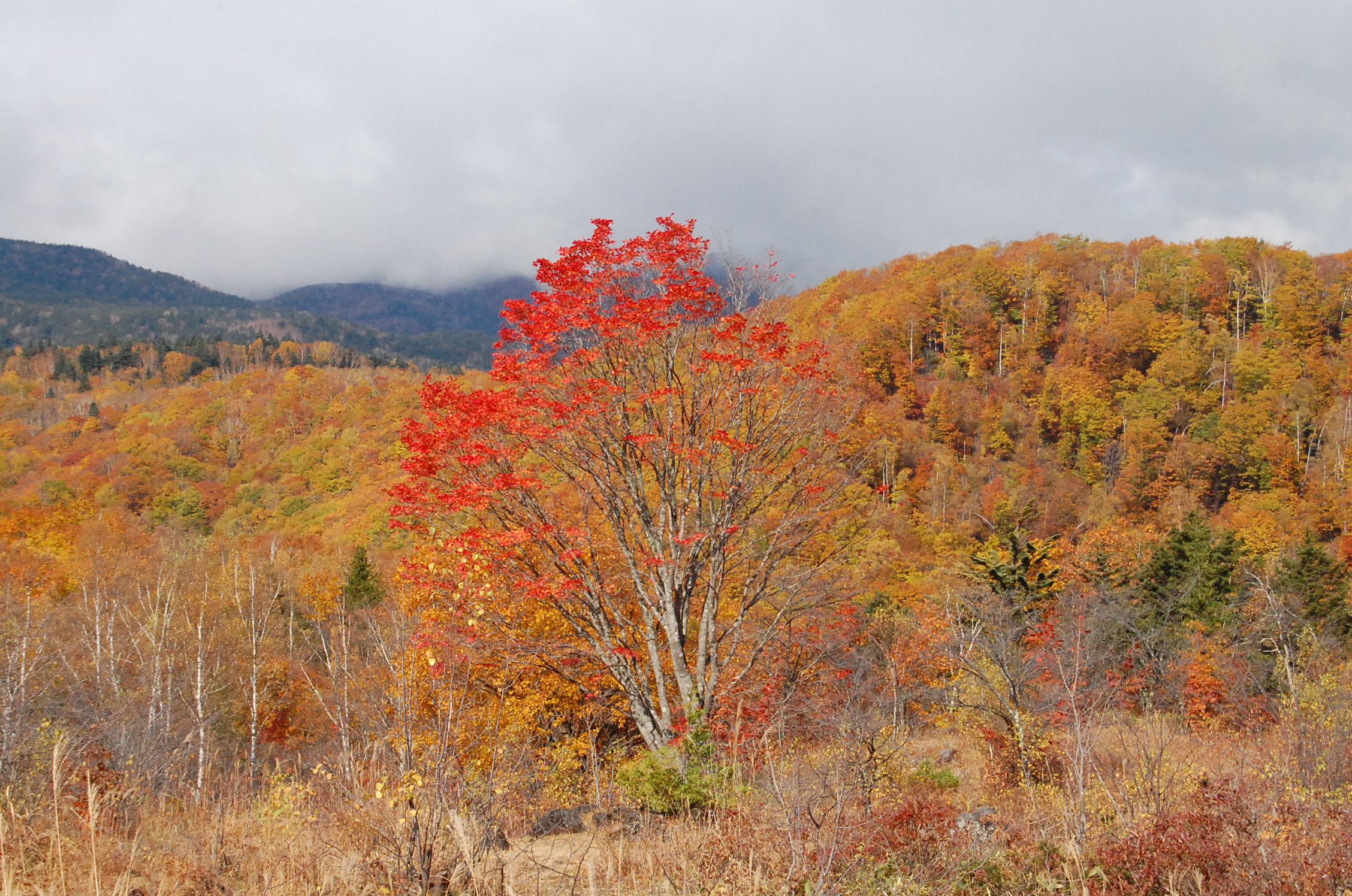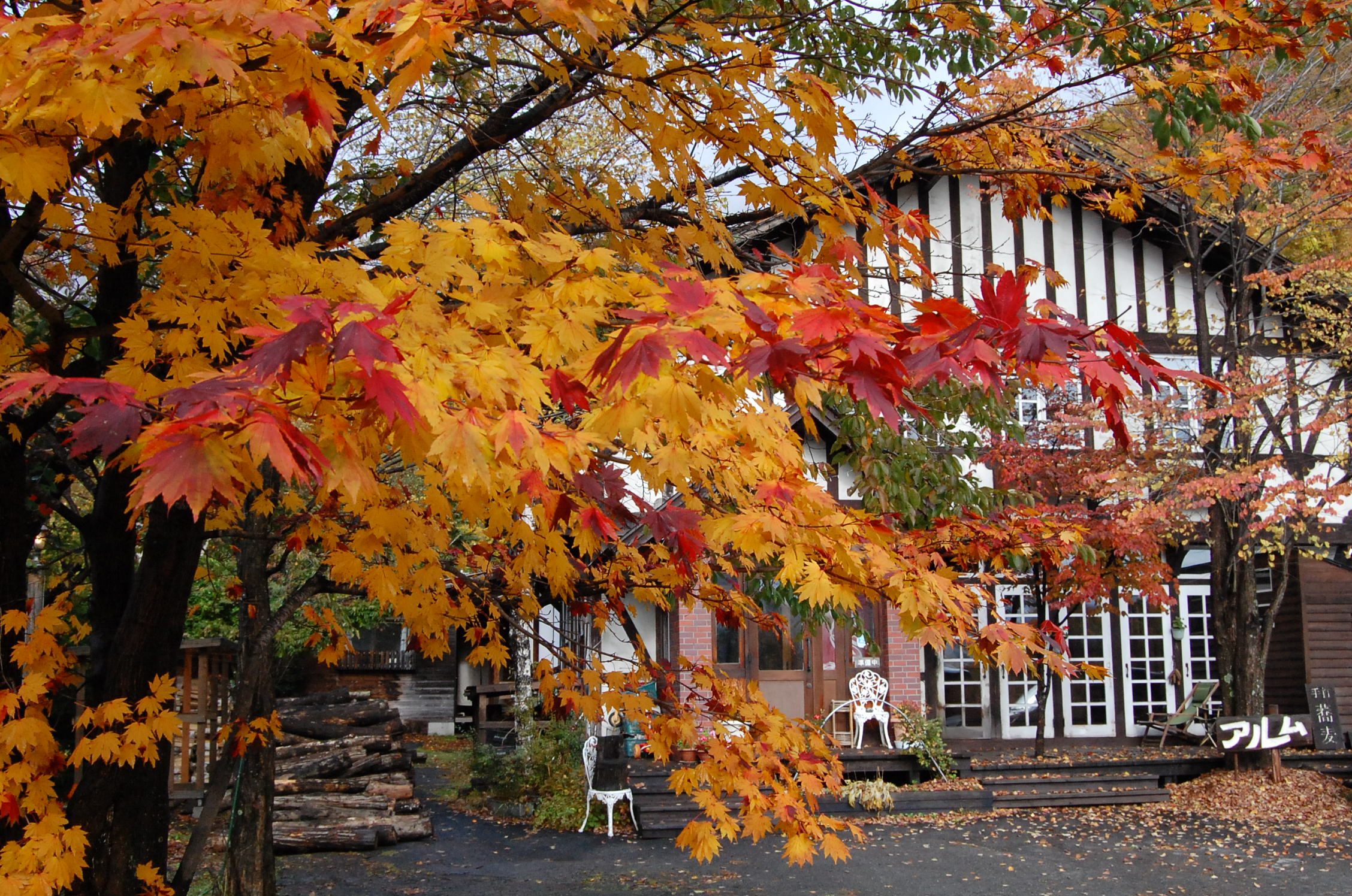 23日の朝。アルムのカエデの色付きがピークを迎えました。