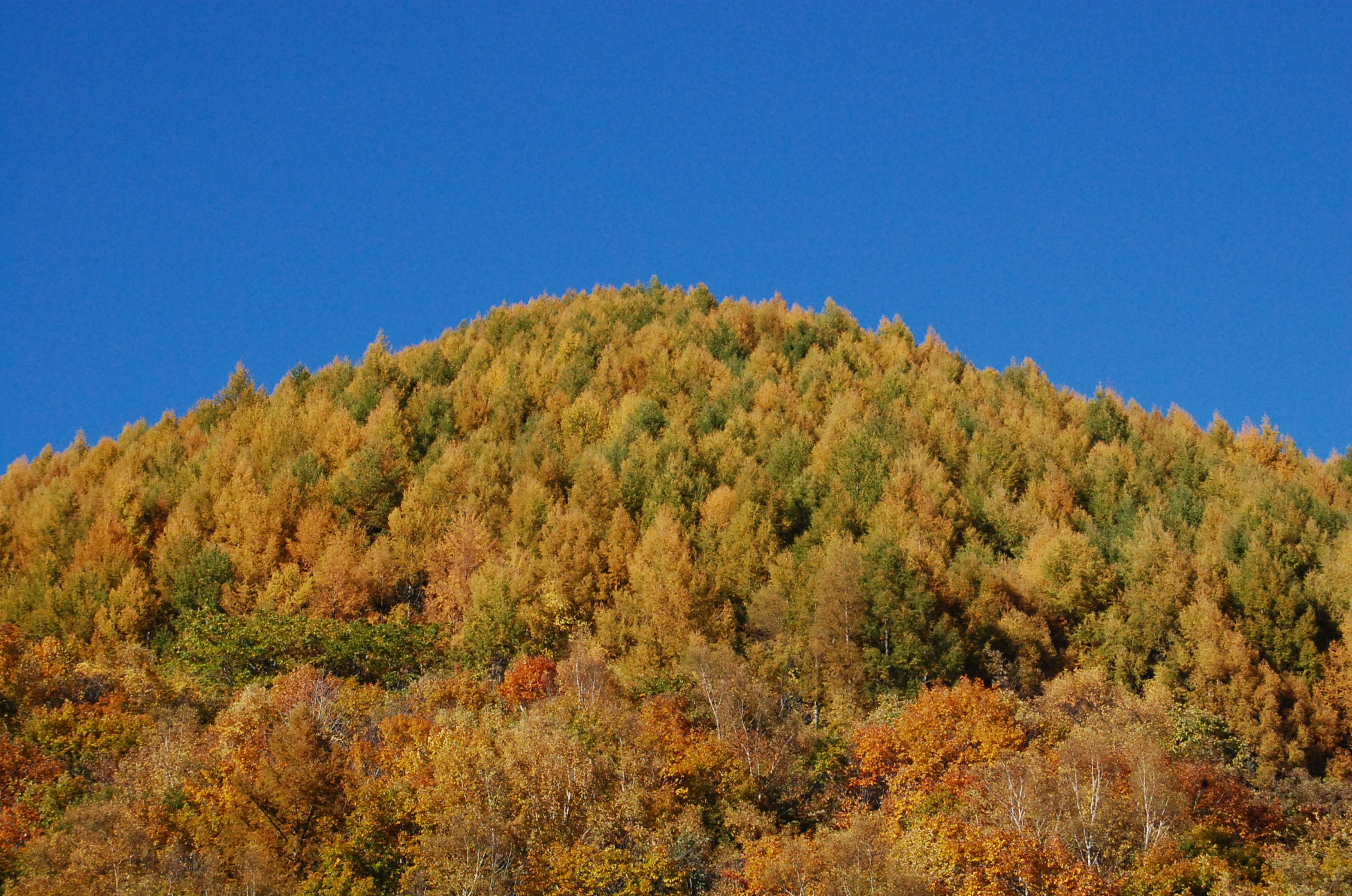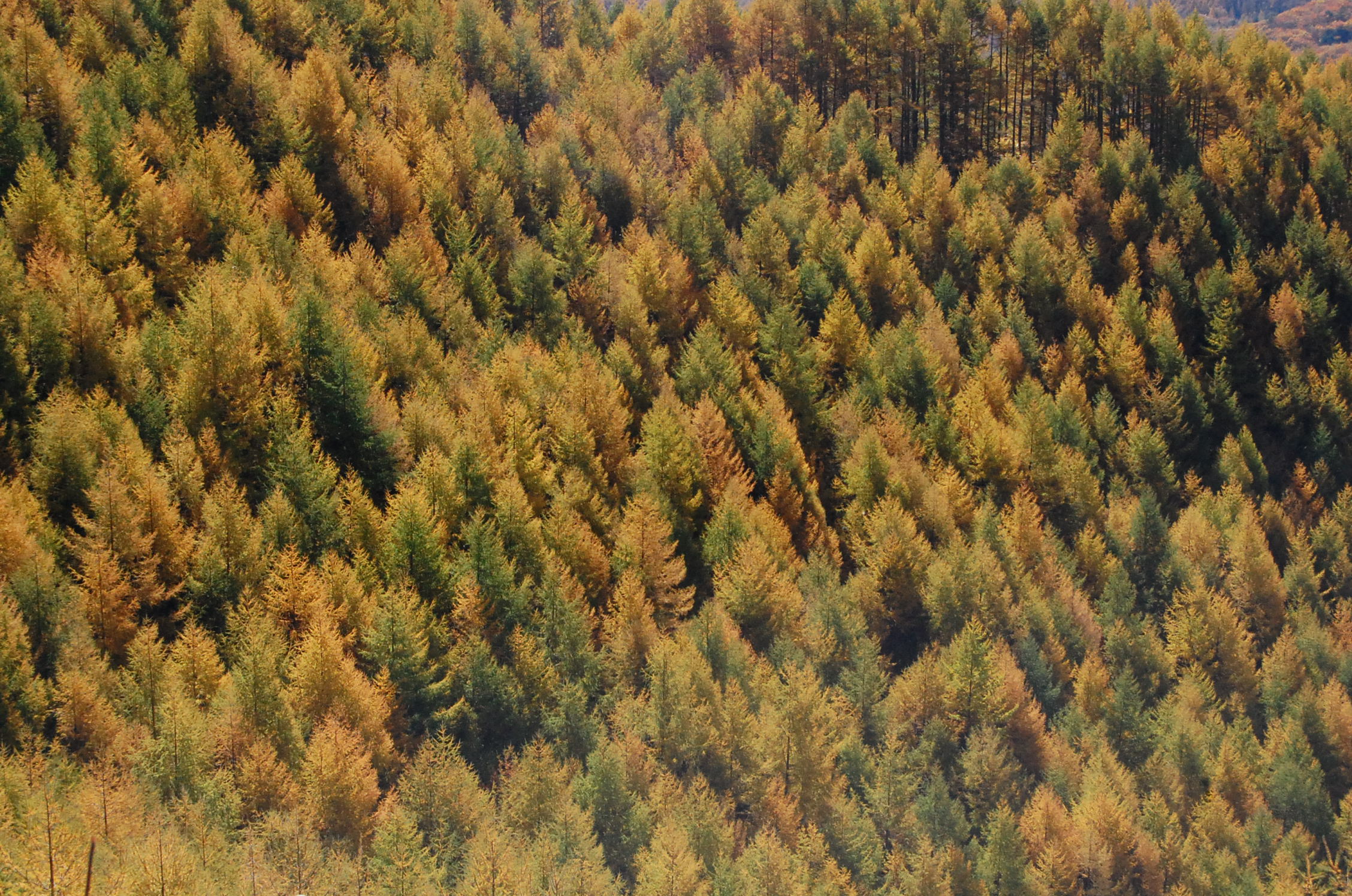 このもこもこしたカラマツの森。もうすぐ全て金色になります。