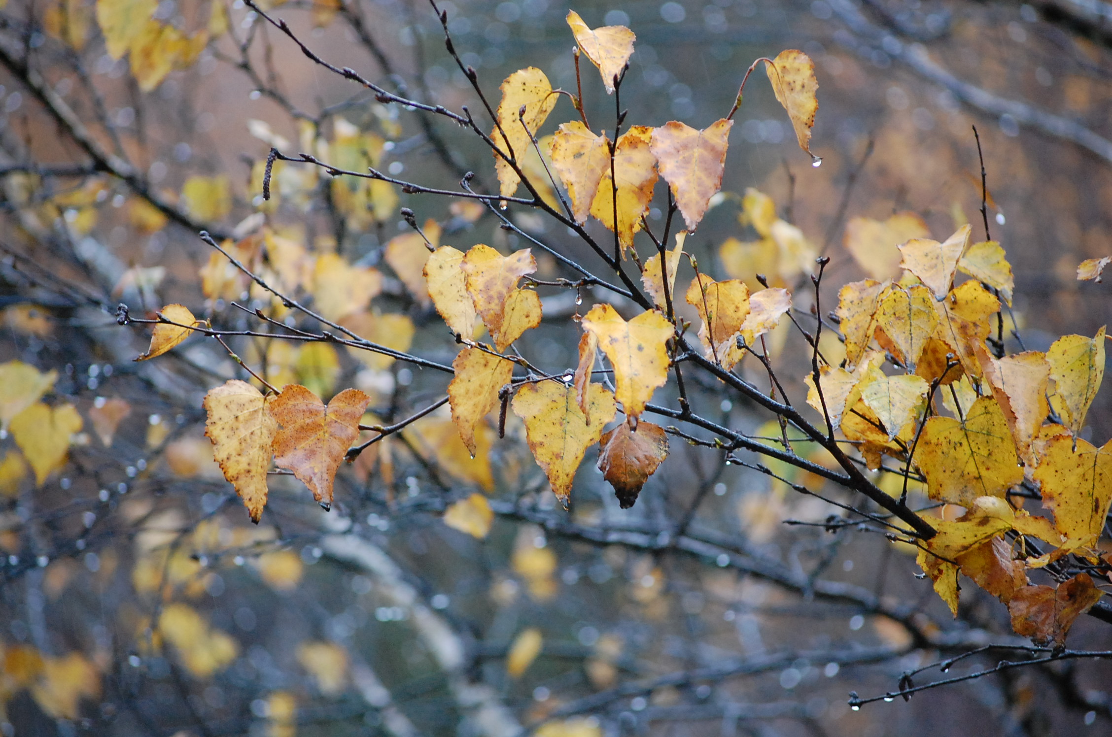 冷たい雨が降って美しい葉っぱたちは日に日に落ちて