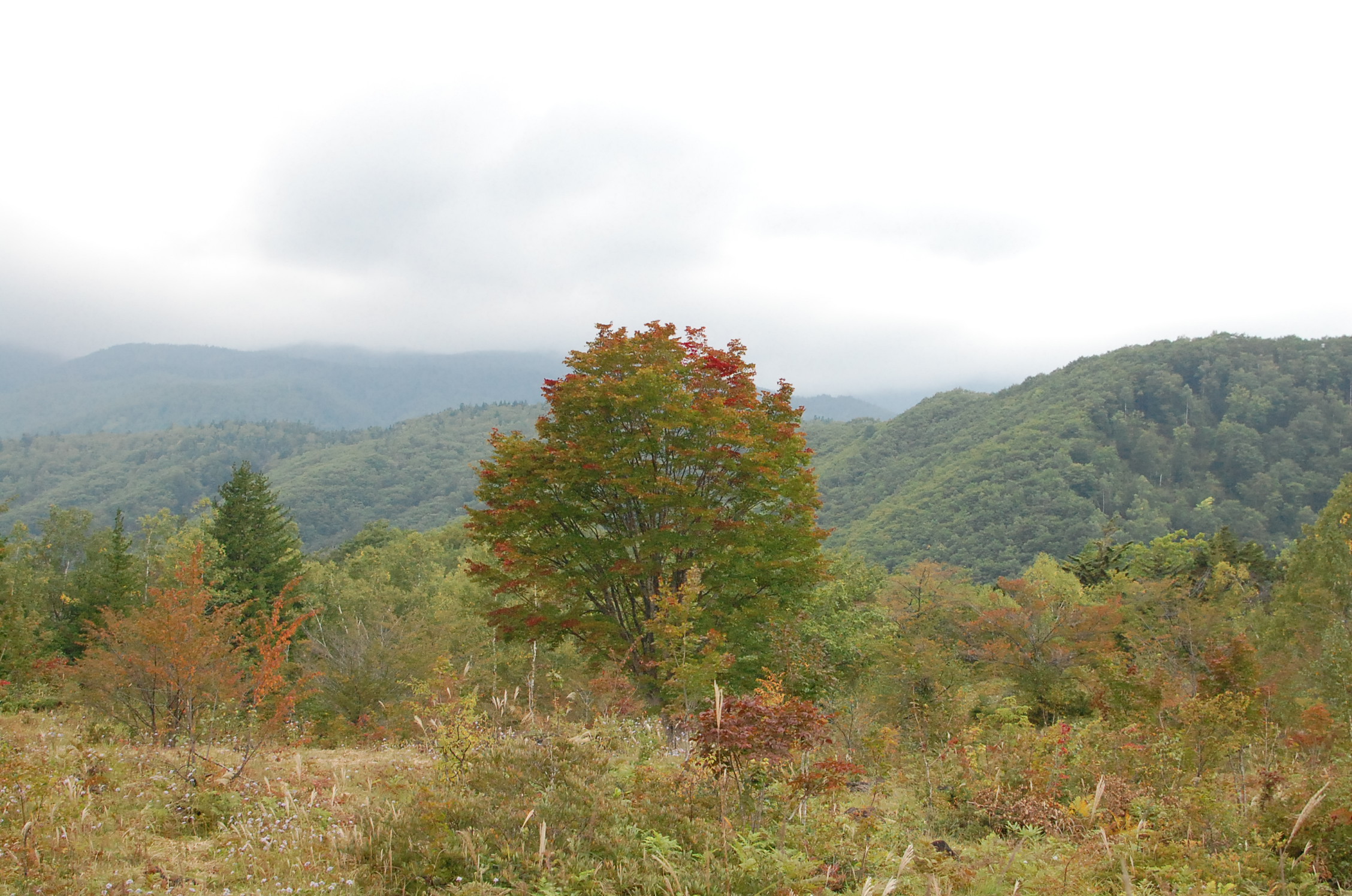例年だと10月中ごろに真っ赤に染まるオオカエデ。