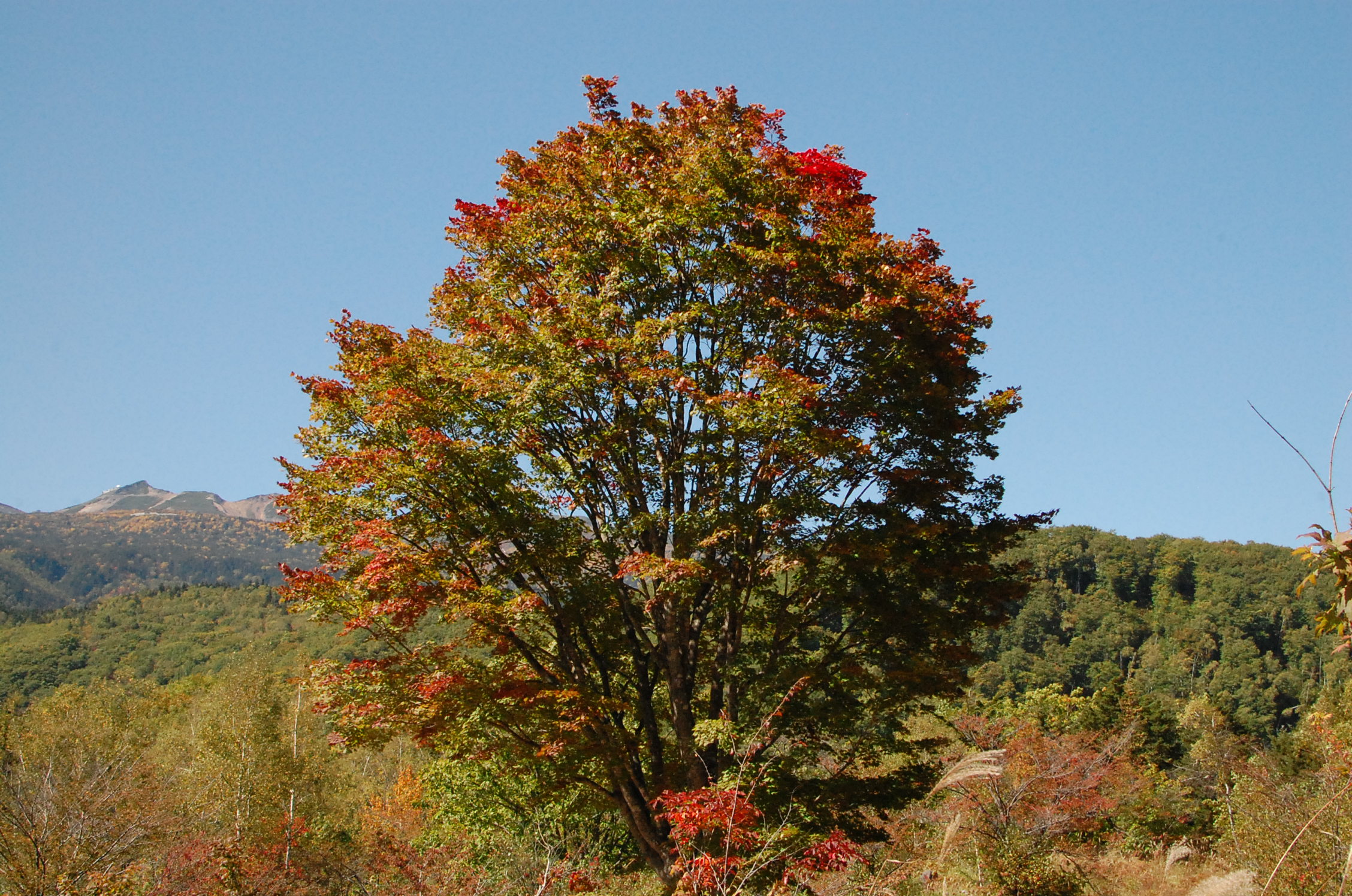 オオカエデは少しずつ、ほんの少しずつ、色付いています。