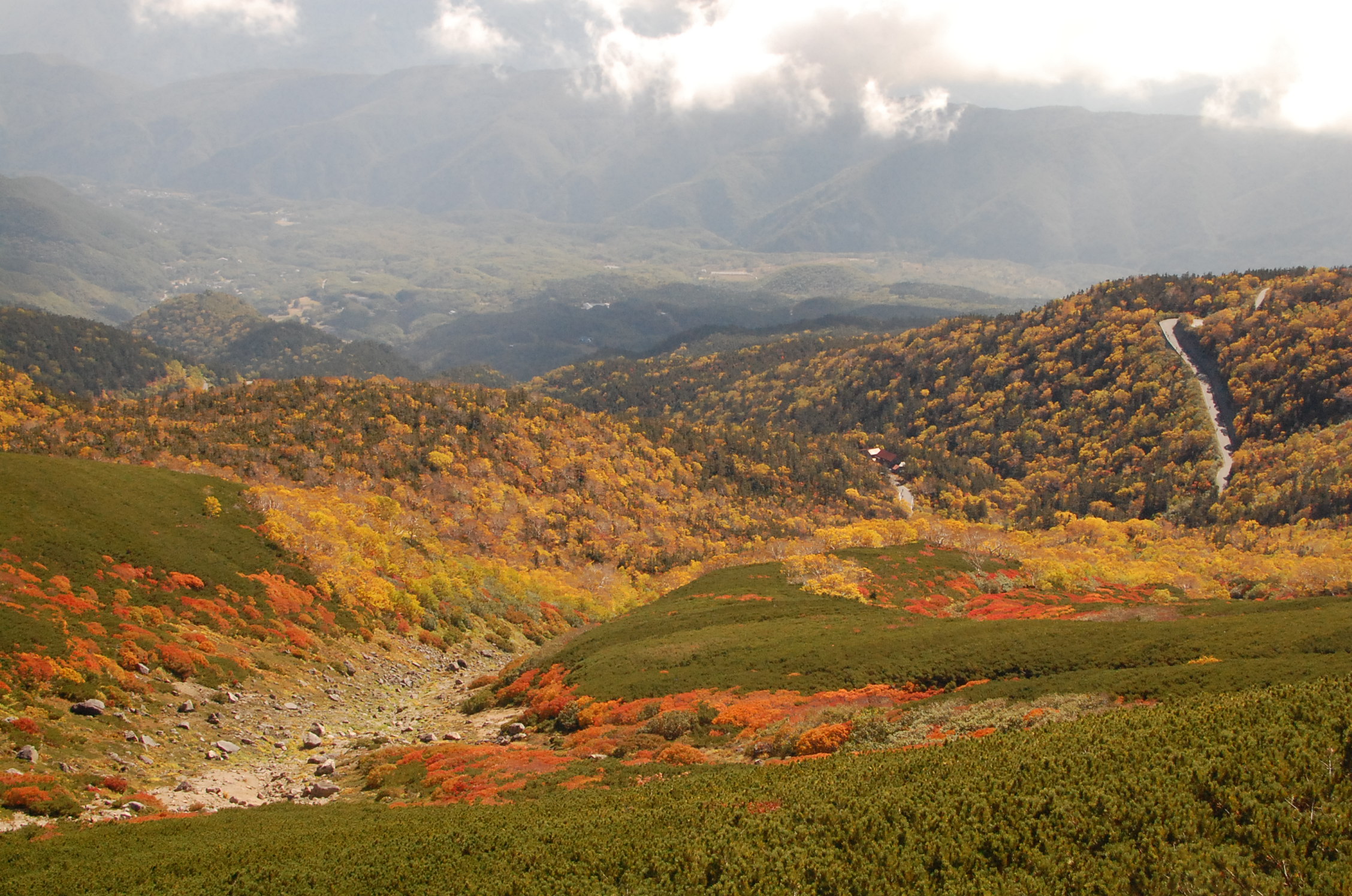 2600mから降りてくる紅葉の波が乗鞍岳から乗鞍高原を包んでいます。