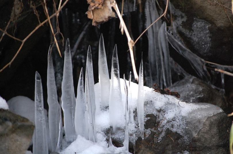 先日お散歩をしていたら、寒さ、暖かさを繰り返して出来た自然の造形を見つけました。