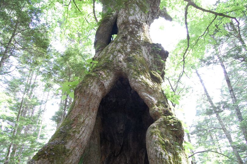 森に入って最初に出会うのは大きな洞の空いたシナノキの古木。