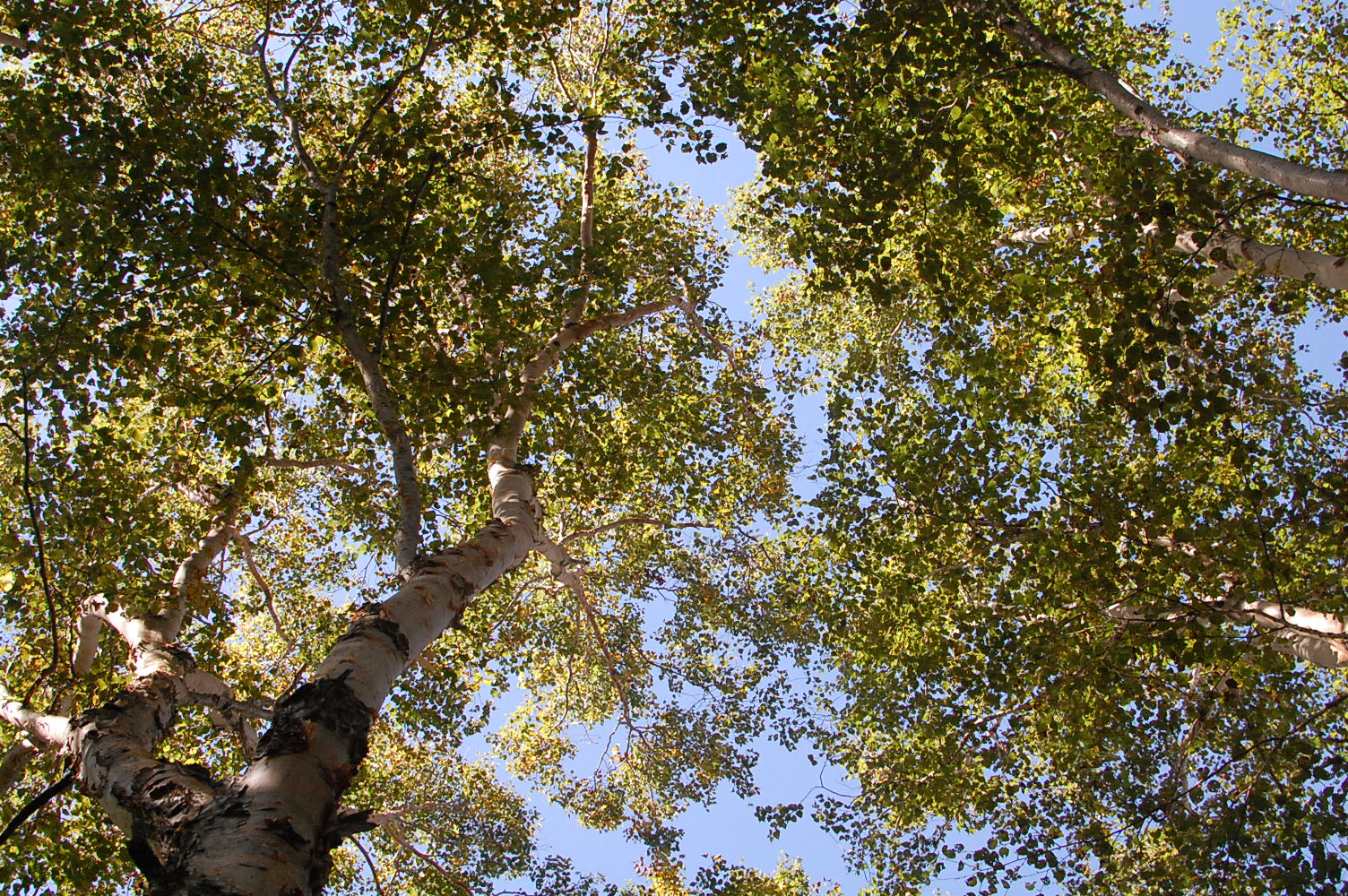 見上げれば黄葉し始めた白樺がきれい。