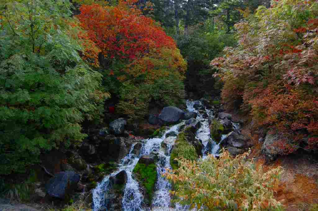乗鞍高原一ノ瀬園地もウルシややますももの木の葉が色付き、