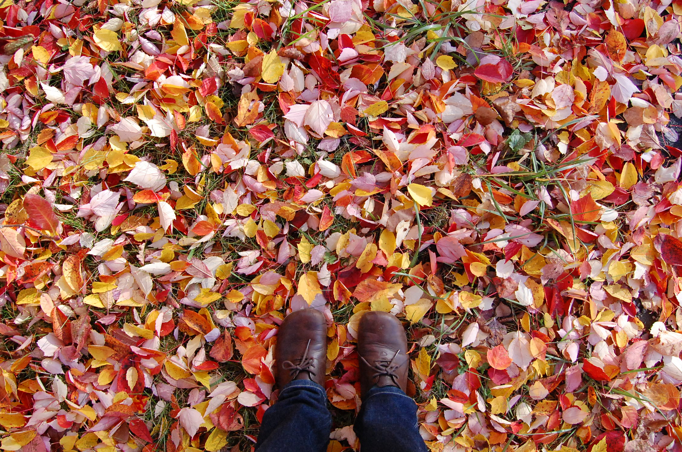 落ち葉がいっぱいの道。なんだか明るいのは、